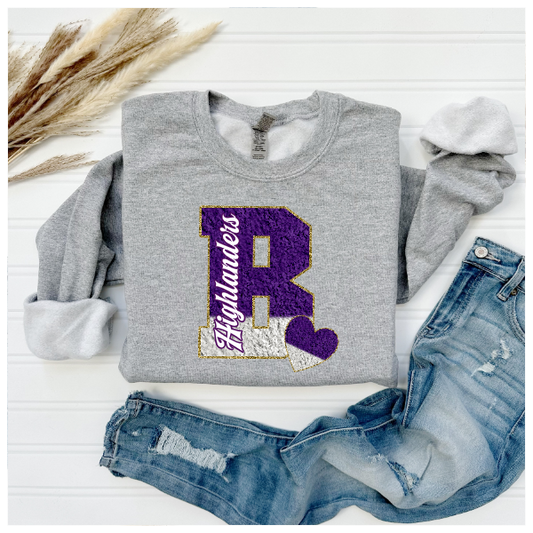 Printed School Spirit Varsity Letters - Baldwin Highlanders Crewneck
